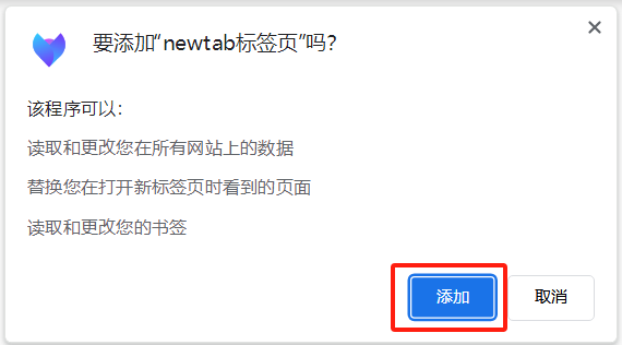 4. 弹出确认弹窗后,点击“添加”;